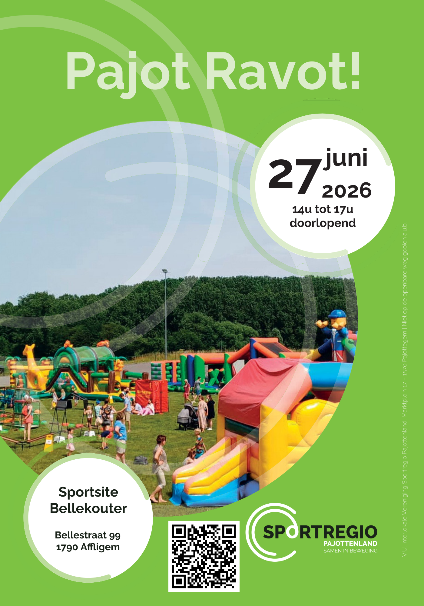 Pajot Ravot! zal doorgaan op het grasveld van de wielerpiste in Affligem op zaterdag 27/06/2026 van 14.00u tot 17.00u!